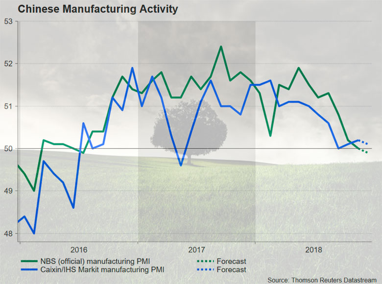 Such prints could add further fuel to the narrative that global growth is set to slow down in 2019 and thus, besides impacting the yuan and the China-sensitive Australian dollar, may also amplify the broader risk aversion seen in markets lately.